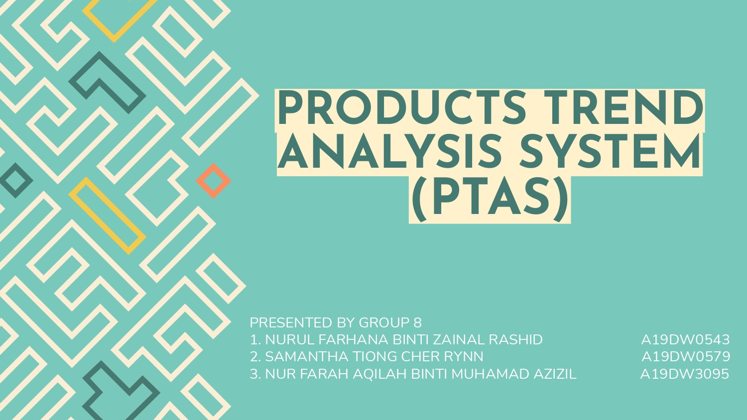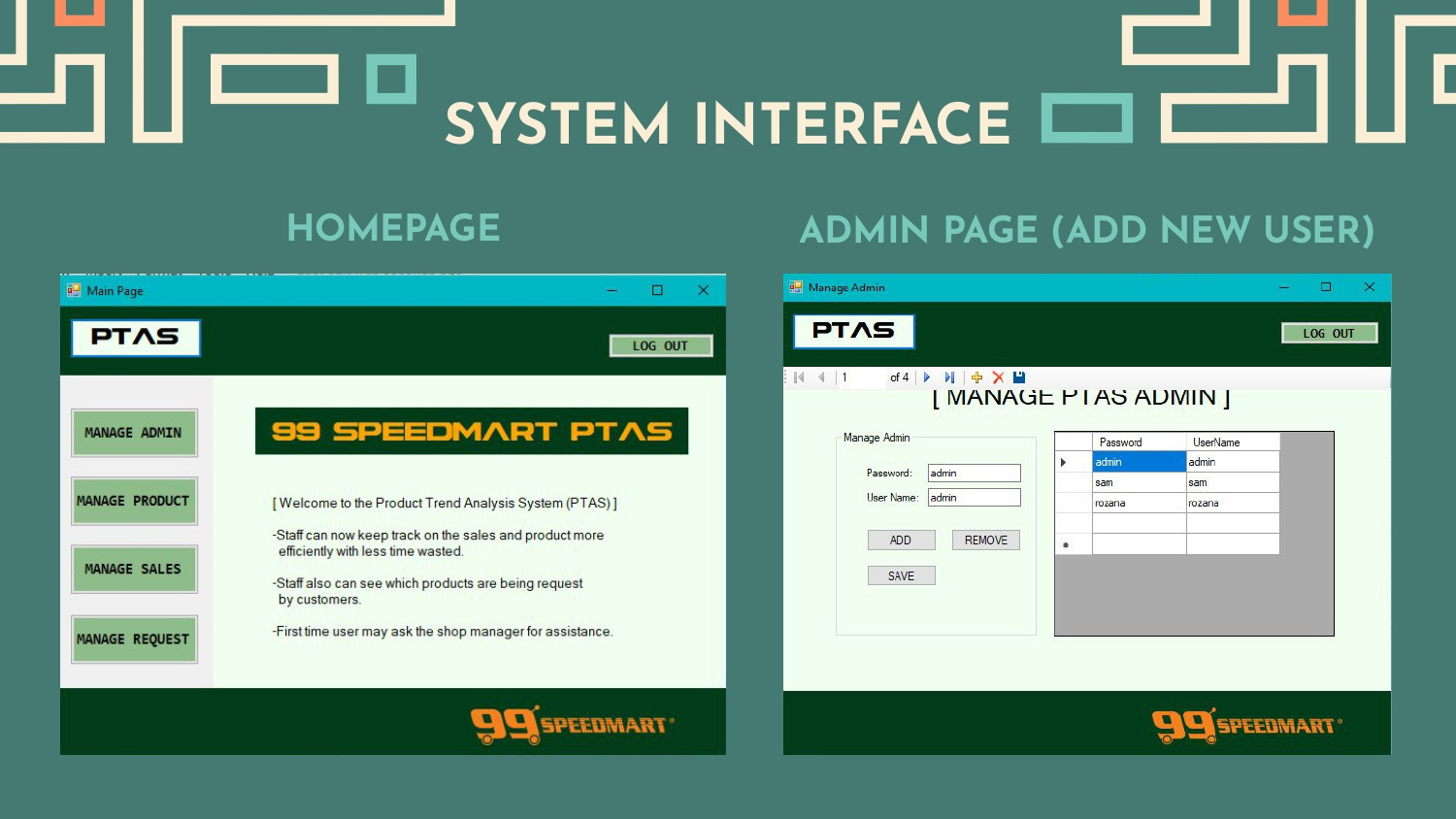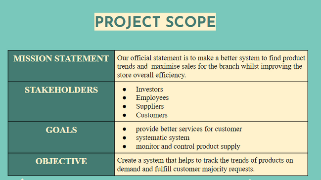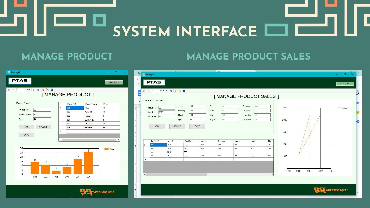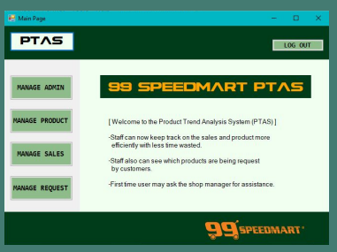 "Products Trend Analysis System or PTAS" was built as store productivity and sales booster assistance. The customers complain that the products are always out of stock at some point in the month. With this system, the store can keep track of the sales trend and determine which products are needed for extra merchandise every month. Its mission is to fulfil the customers' demands and store overall performance.