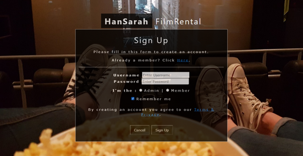 A group project for the "Web Programming" subject. An online prototype of a movie rental website using HTML and PHP. Consist three team members.