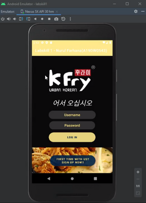 A simple login, signup and update profile features on Android Studio using the "Shared Preference" function. I designed this based on the famous KFry franchise. The Korean word in the login means "Welcome."