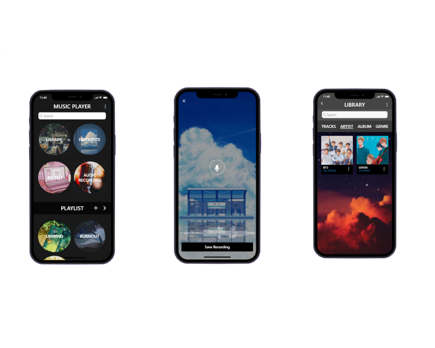 This design was a group assignment under the "Mobile Programming" subject. The chosen application was "Music Player App", only available on android with some impressive features. However, the interface is quite outdated. Alongside a new refreshing look, our team has added various new features in the new application prototype.